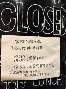 3/17(火)まで臨時休業いたします🙇♀️